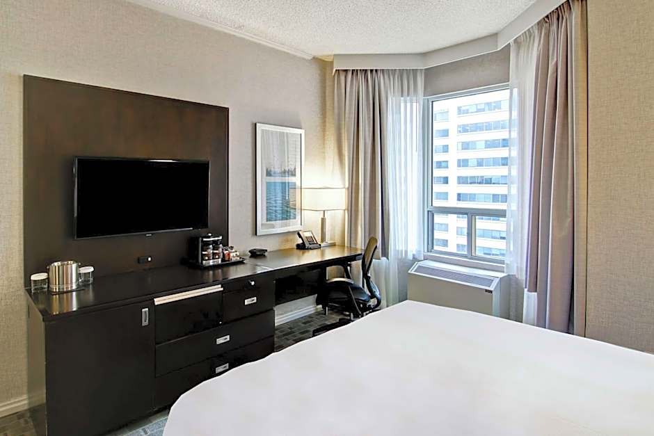Fitted with a pillow-top mattress and roll-in shower, this room offers a 40-inch HDTV and an armchair with ottoman. A work desk, ergonomic chair and free Wi-Fi are also provided. Guests are welcomed with warm chocolate chip cookies upon arrival.