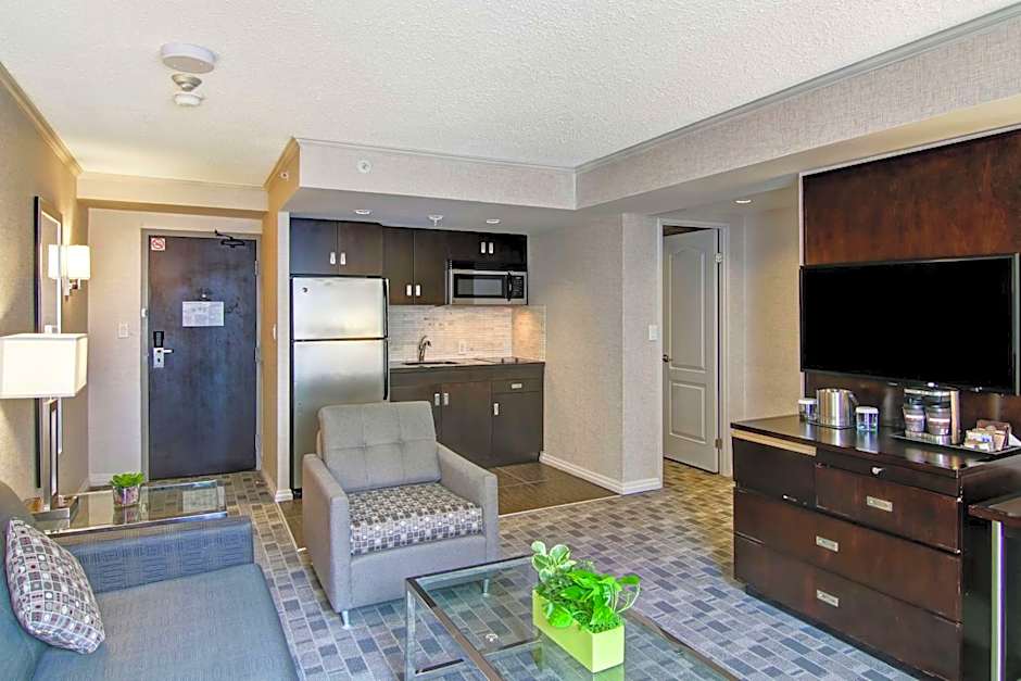 Tastefully decorated suite offers a separate bedroom, seating area and kitchen. It includes 2 HDTVs with pay-per-view channels, safe, iPod docking station and work desk with ergonomic chair. A walk-in shower stall, bathrobes and a hairdryer stock the bathroom.